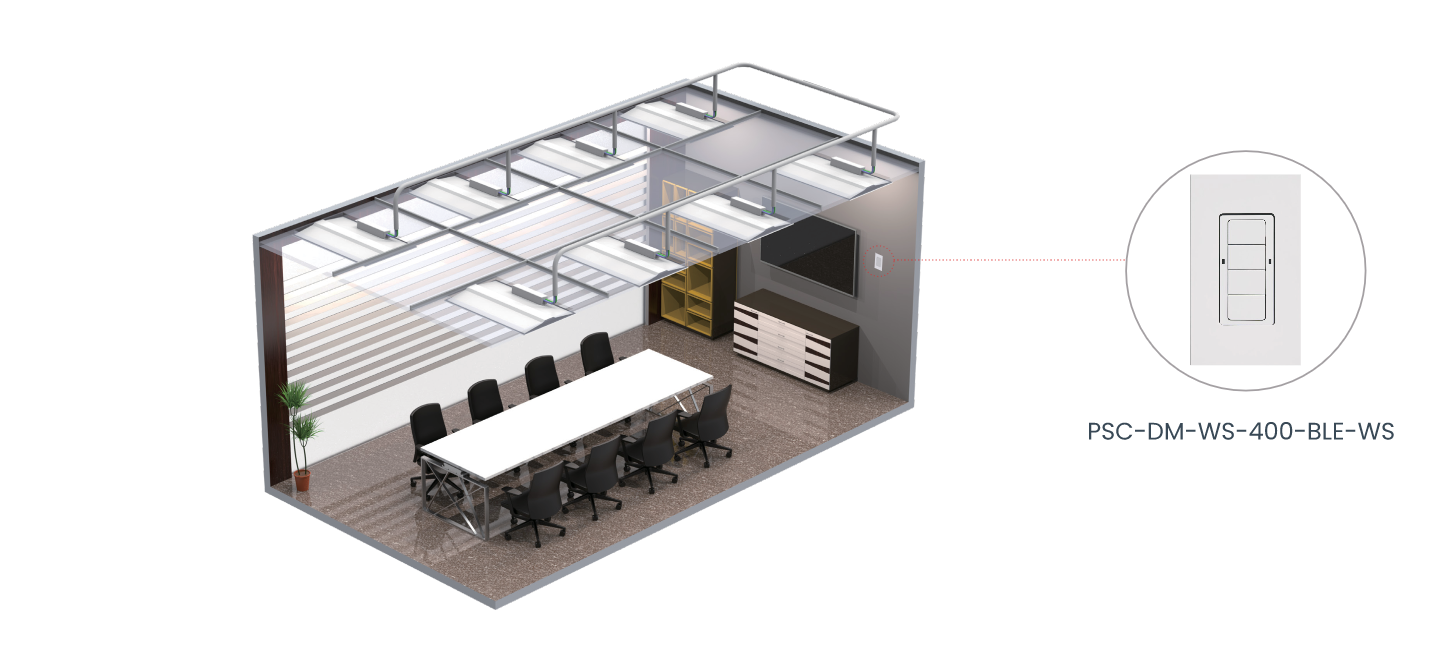 Unlock the power of PSC-DM-WS-400-BLE-WS, a 4-button wireless Bluetooth mesh wall controller. This device seamlessly communicates with Bluetooth mesh controllers, providing scene and light level control within your space. With field-customizable buttons, it offers ON/OFF, up/down preset scenes, or color tuning.