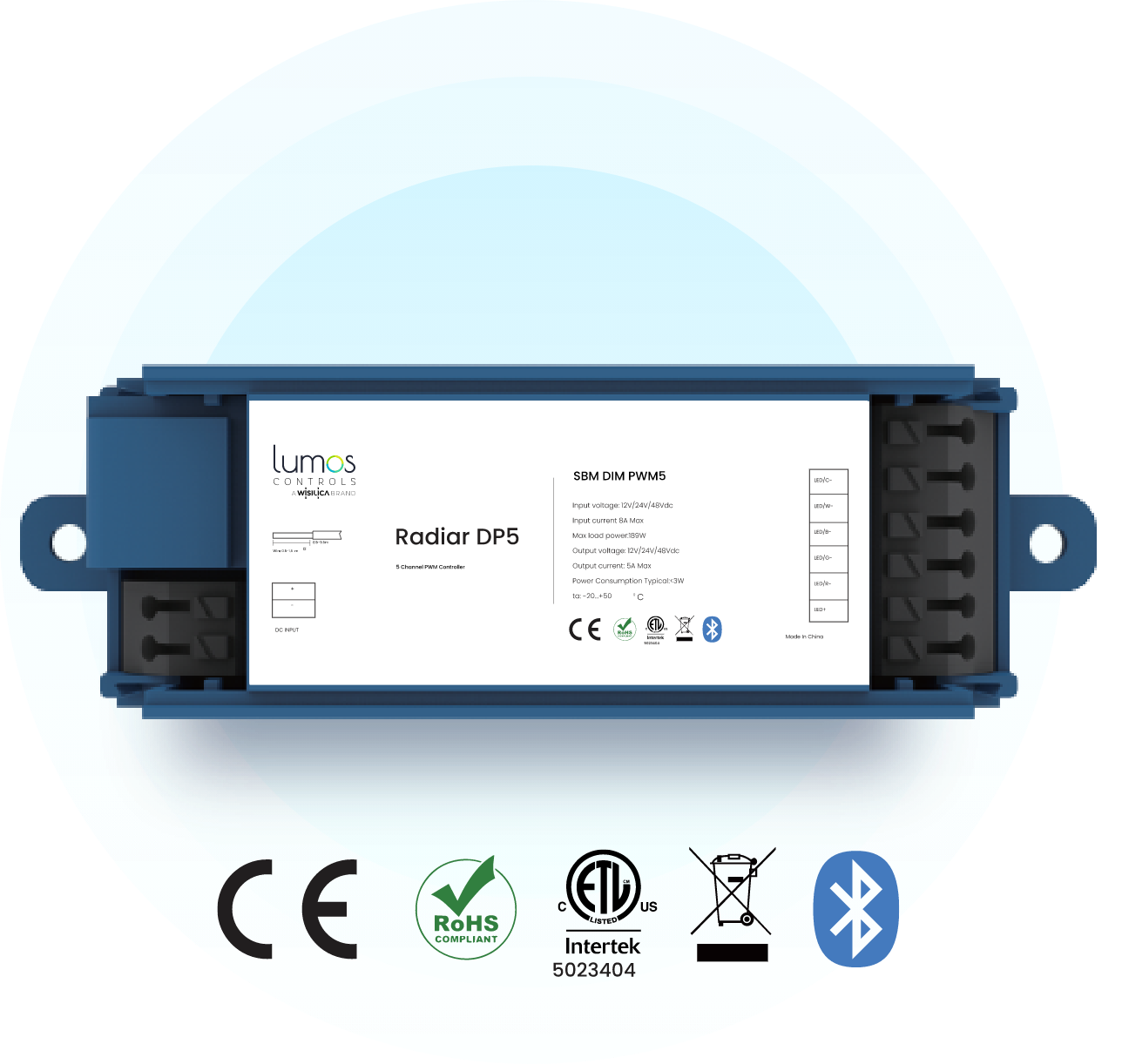 Radiar DP5 is a 5-channel constant voltage dimming module that provides excellent color adjustment performance to adjust the LED light color and brightness.