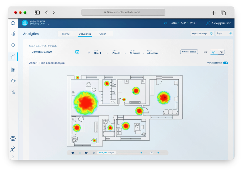 The sensor collects and feed in data that are critical for generating space analytics and occupancy heatmaps.