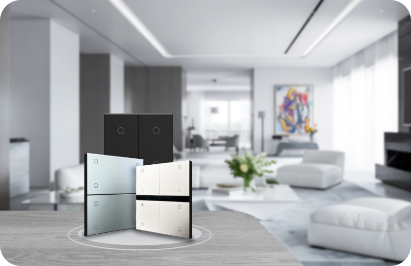 The Fashion Series offers compact functionality tailored for modern spaces. This AC-powered 4-button Bluetooth-enabled switch provides personalized lighting and scene control, making it an ideal addition to any smart lighting setup.